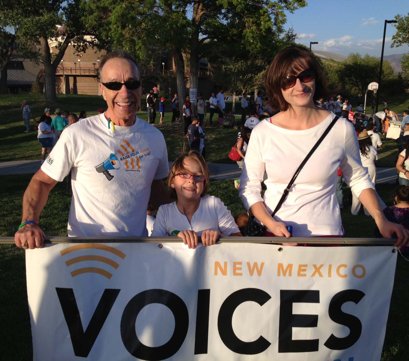 NMVC Senior Policy Advisor Bill Jordan (left) helps carry the NM Voices’ banner in a march for immigrant rights in May 2013.