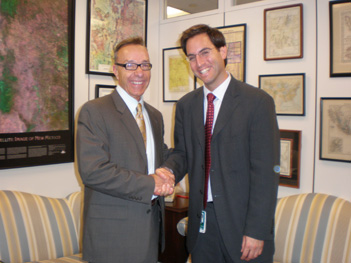 Alex McCausland2018-06-19T08:57:46-06:00NMVC Policy Director Bill Jordan (left) thanks US Senator Jeff Bingaman staff member Frederick Isasi (right), for all their good work on health-care reform at the Senator’s Washington, DC, office in October 2009.